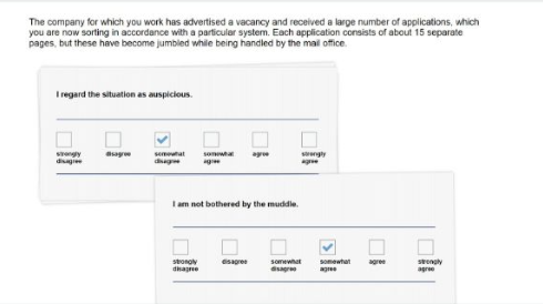 Assesses the Big Five dimensions of personality: Extraversion, Agreeableness (team orientation), Conscientiousness, Emotional stability, (resilience) and Openness in various situations (flexibility) and Situational perception.